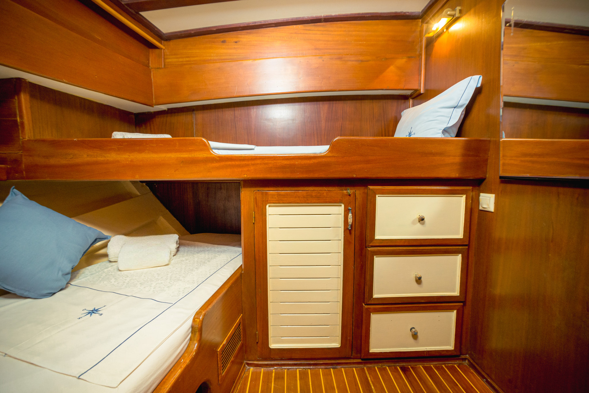 On board, a professional crew including captain, chef and deckhands ensures attentive service, daily cabin care and smooth navigation throughout the cruise.