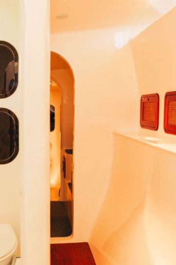 This Catamaran features three en-suite double master cabins with their own bathroom, electric toilet and shower facilities and one double aft cabin with shared shower and bathroom. All cabins are well-ventilated with double electric fans and opening hatches, twin individual lighting and have room for storing your personal belongings. The crew is accommodated forward in their own private cabins which are accessible from the top hatch.