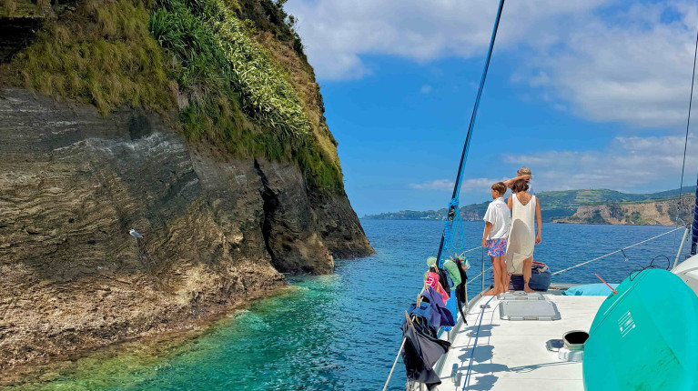 Private sailing experience along the south coast of São Miguel in the Azores aboard a 47 ft catamaran, ideal for families and small groups seeking comfort, professional crew and a memorable day at sea.