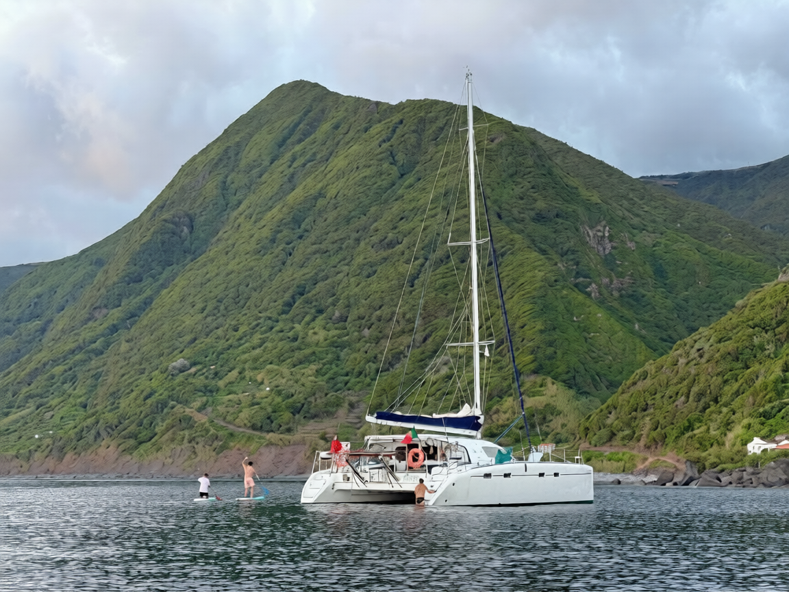 While anchored, and depending on sea and safety conditions, guests may swim in clear Atlantic waters, go snorkeling along the rocky coastline or explore the bay using stand up paddle boards. Those who prefer a more relaxed experience can simply unwind on the spacious deck, lounge on the forward trampoline or enjoy the panoramic ocean views from the cockpit seating area.