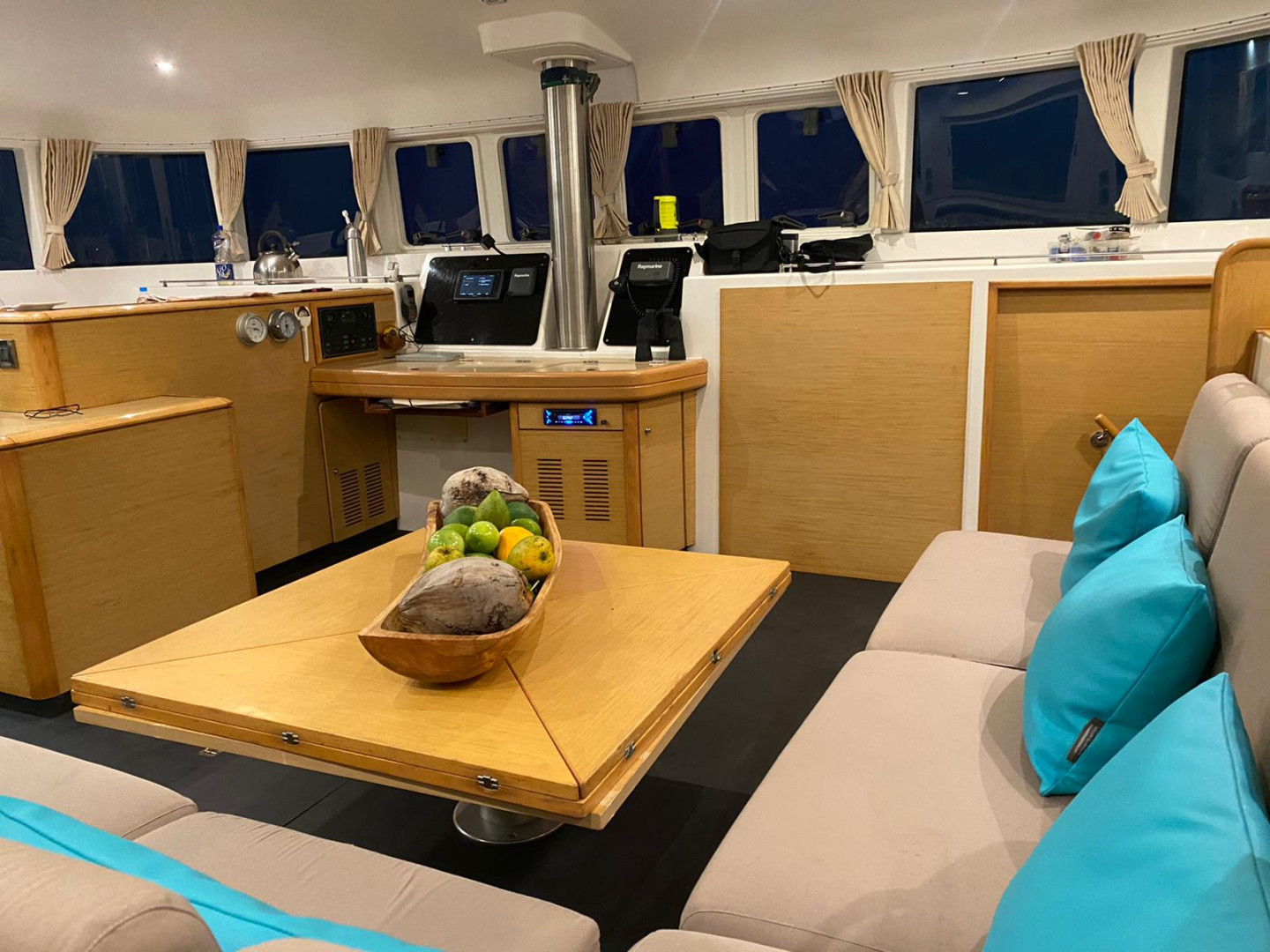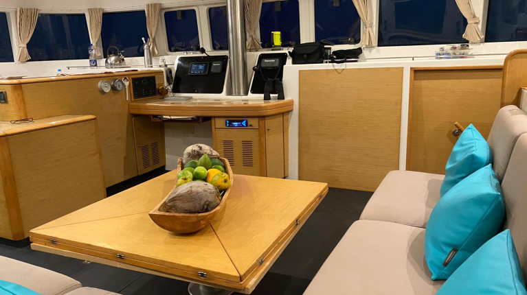 Guests can enjoy a large shaded lounge at the stern, an interior saloon with panoramic views, a fully equipped kitchen and two forward trampolines perfect for sunbathing or sipping a drink as the breeze carries the scent of the ocean.