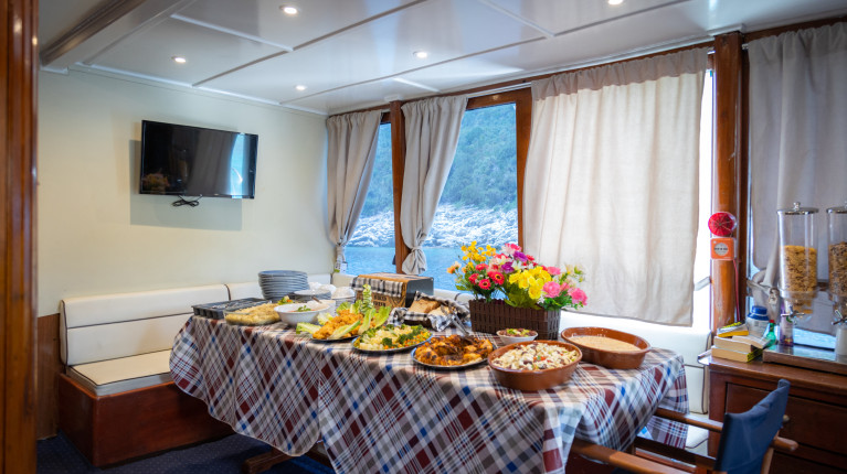 Each gulet is operated by a professional local crew, typically including a captain, chef and deckhands, all experienced in Greek cruising areas. The crew takes care of navigation, meals, daily routines and safety, adapting the itinerary according to weather conditions and sea state to ensure a smooth and enjoyable cruise. Meals are freshly prepared on board and served in a convivial setting, contributing to the relaxed onboard rhythm.