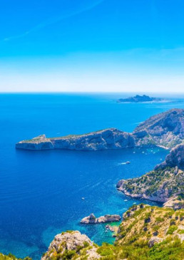 Further west, the coastline becomes more sculpted. The Calanques introduce narrow limestone coves carved deeply into the rock, where water reflects in bright blue gradients against pale cliffs. Offshore, islands such as Porquerolles create compact sailing circuits within protected marine zones. Here, anchoring is regulated and distances between stops remain short, making it ideal for balanced weekly itineraries.