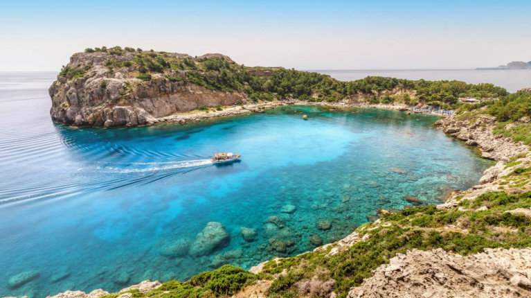 A relaxed gulet sailing route from Rhodes exploring Symi, Tilos and Chalki with swimming bays, historic villages and authentic Greek island life