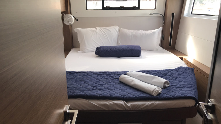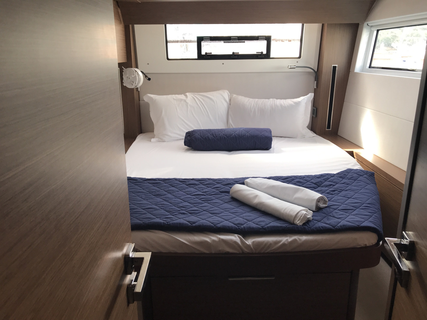 Stable under sail and comfortable at anchor, the Lagoon 50 is designed for longer voyages and island-hopping alike. Guests appreciate its modern amenities, from ample storage to separate crew cabins, which allow for professional service when booked with skipper and hostess.