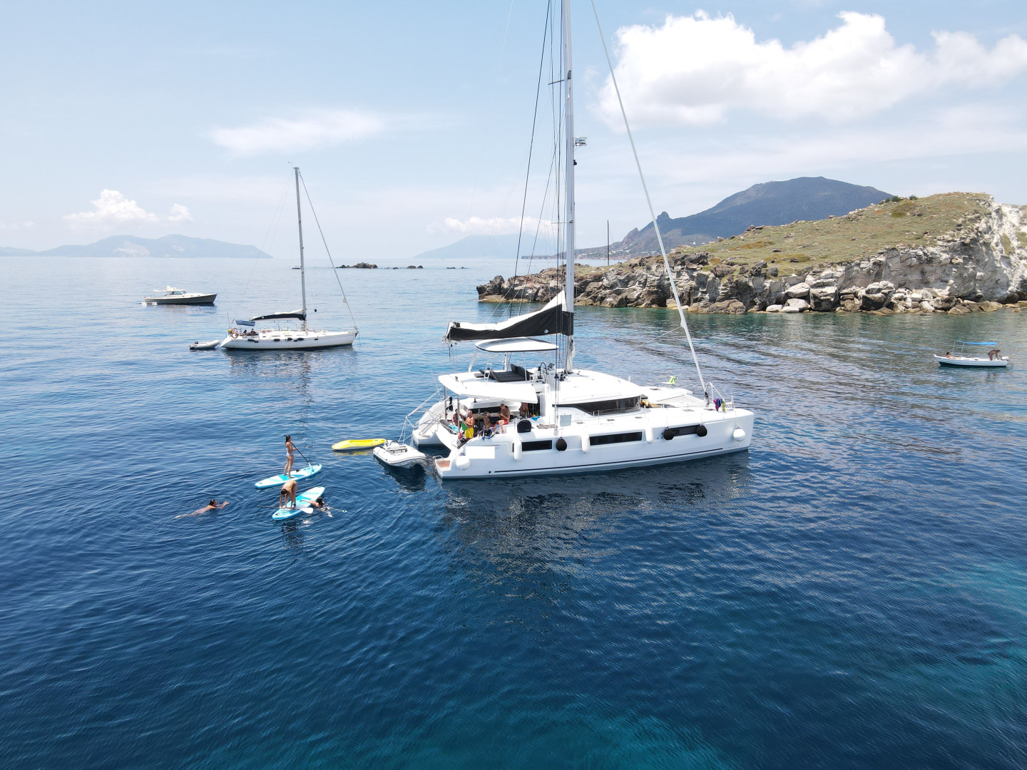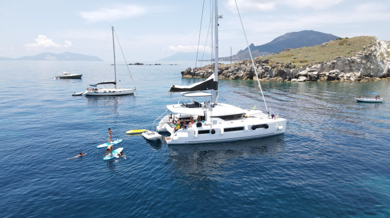 Discover Stromboli, Panarea, Lipari and Vulcano on a Lagoon 50 catamaran. Join a cabin charter with max 10 guests or request a private charter.