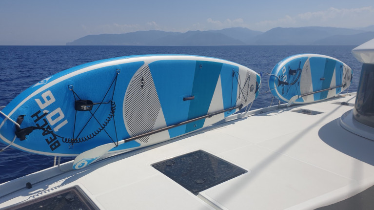 Life on board balances adventure and relaxation. Days are spent swimming in crystal-clear bays, snorkeling around volcanic cliffs, paddleboarding (SUP included), and short sails between the islands. Evenings bring dinners on deck under the stars or local experiences in Sicilian trattorias.