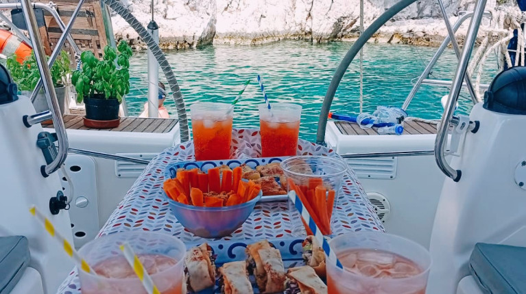The yacht features spacious double cabins, functional bathrooms and a bright indoor saloon with a fully equipped kitchen, creating a practical and welcoming environment for life at sea. The layout is ideal for small groups, couples or families, offering both privacy and shared spaces for relaxing during the journey.